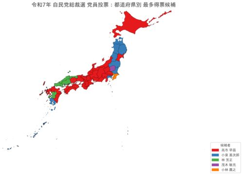 自民党総裁選挙が終わり、初の女性自民党総裁が誕生しました。 自民党の公式サイトに党員投票の結果がPDFで掲載されていたので、グラフにまとめてみました。 高市早苗新総裁の圧勝でした。