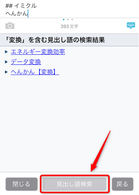 文字選択を行うとその語句の意味が表示されますし、文字選択しなくても下記の画面の「検索したい単語を入力」から辞典を使うことが可能です。