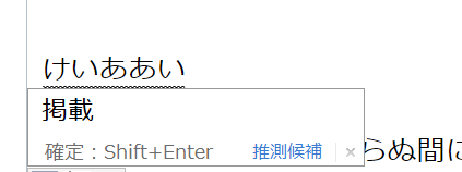 実際試してみたのが下記のスクリーンショットです。私も上図のAさんと同じく「掲載」と自動補正されました。