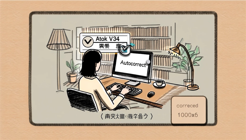 打ち間違いの補正は、知らぬ間に修正してくれます。修正してくれている実感がないぐらい素早く補正するので、この機能に助けてもらっているという実感がないのが、開発者側としてはつらいところかもしれません。それだけATOKが凄いということですが。