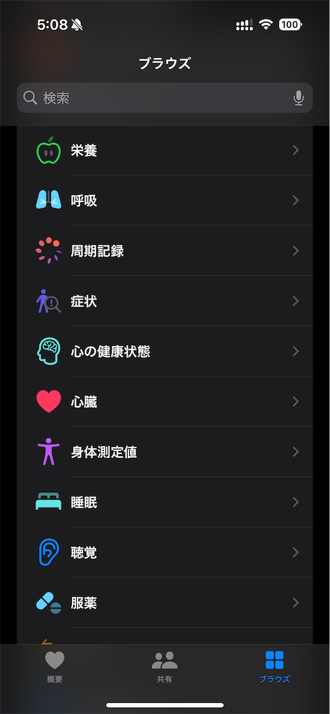 ヘルスケアアプリのブラウズタブから心臓に進みます。心拍変動をタップするとHRVのグラフが出てきます。