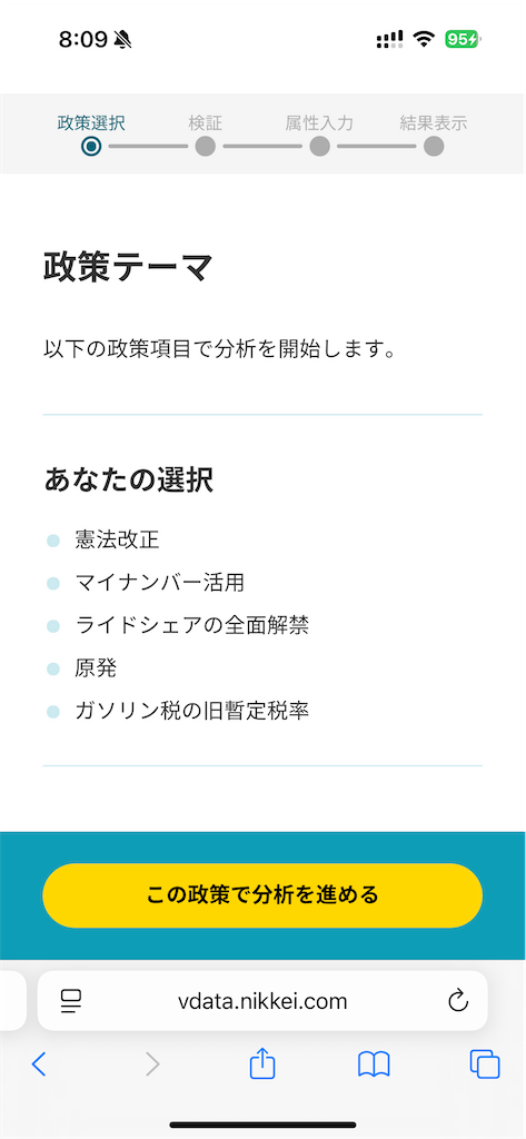 25項目の政策のなからから、自分の5つの重点政策を選び、政策マッチングを行います。