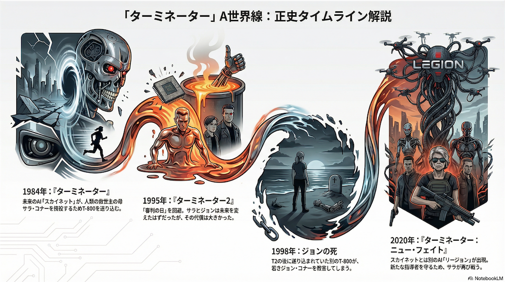 正しい系譜は監督ジェームズ・キャメロンの撮った作品(世界線A)となるようです。